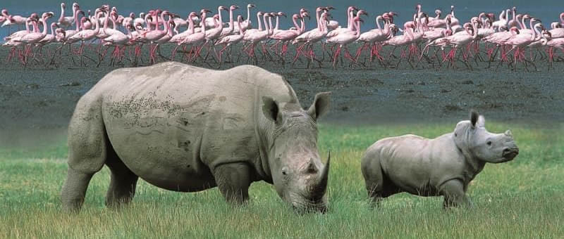Apart from the flamingos, Lake Nakuru National Park is home to an array of wildlife. The park's rich biodiversity includes both black and white rhinos, making it one of the best places in Kenya to observe these endangered species. Additionally, visitors can spot an assortment of wildlife such as zebras, giraffes, buffalo, waterbucks, and both lion and leopard, among others.